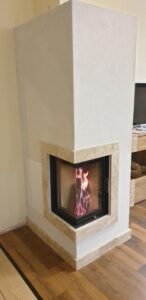 Professzionális építőanyagokból épített hőtárolós kandalló